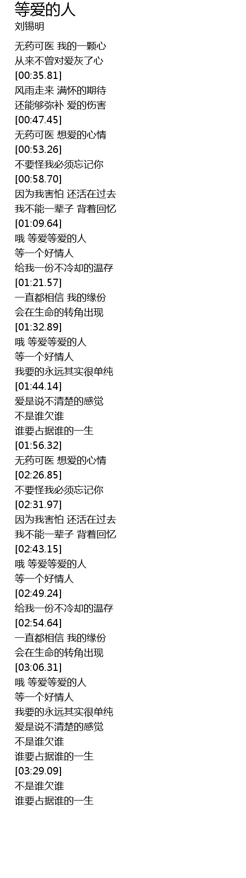 | [01:36.28] | děng yí gè hǎo qíng rén |