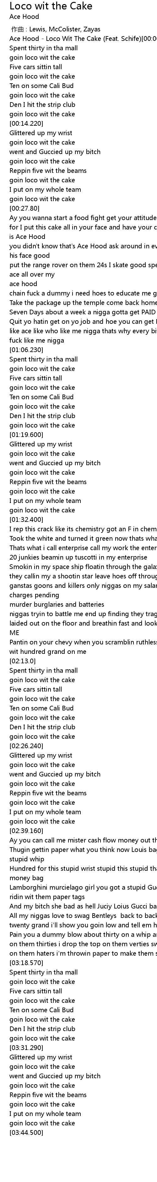 | [00:31.80] | for I put this cake all in your face and have your crew like who dat is Ace Hood |