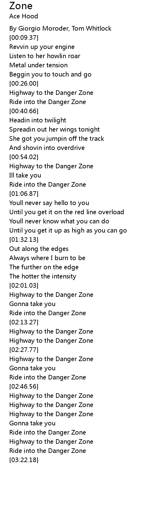 | [03:18.63] | Ride into the Danger Zone |