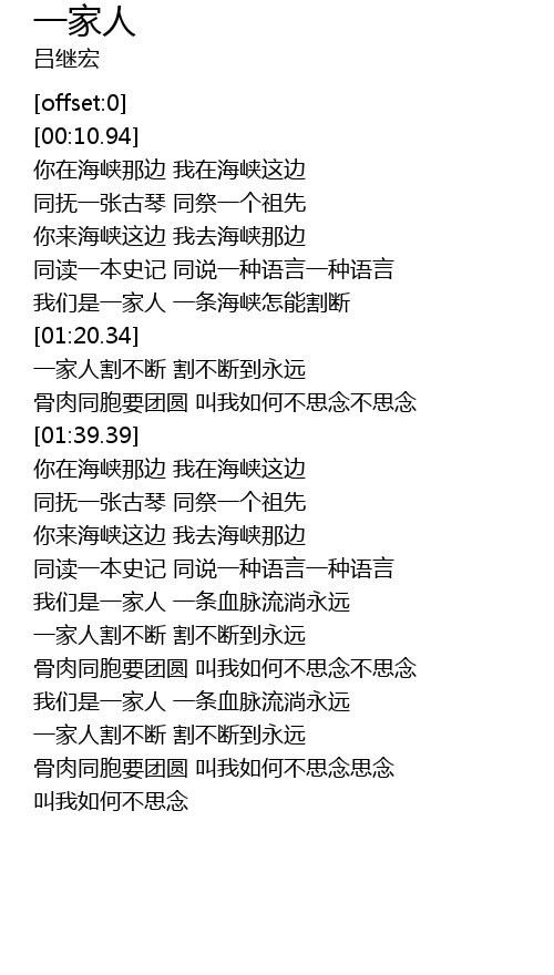 | [03:42.41] | 骨肉同胞要团圆 叫我如何不思念思念 |