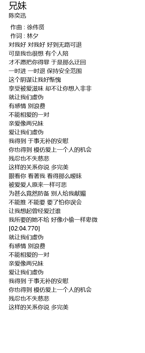 | [02:35.480] | qīn ài xiàng liǎng xiōng mèi |