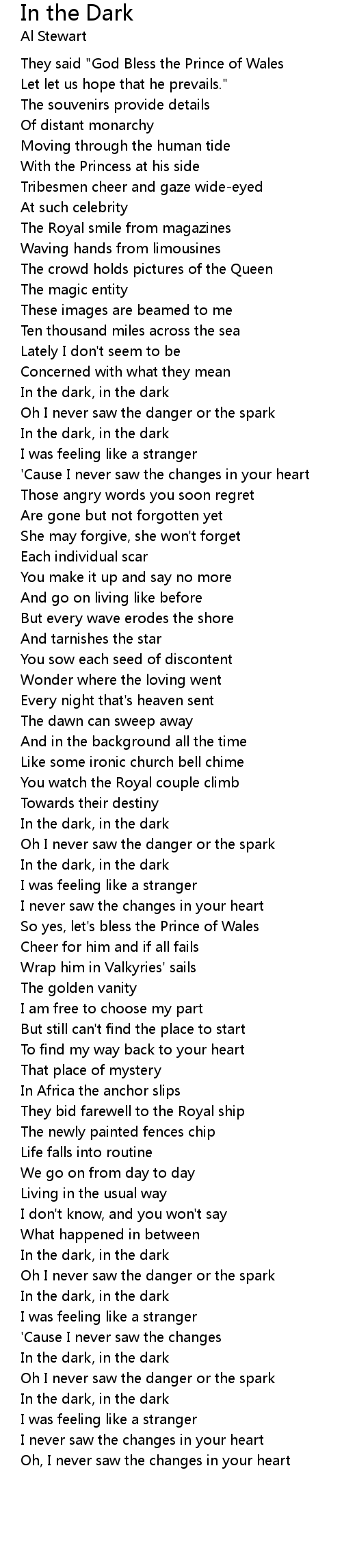 In the dark, in the dark |