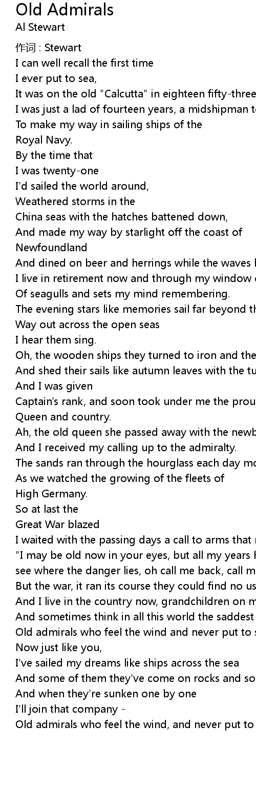 | Oh, the wooden ships they turned to iron and the iron ships to steel | |