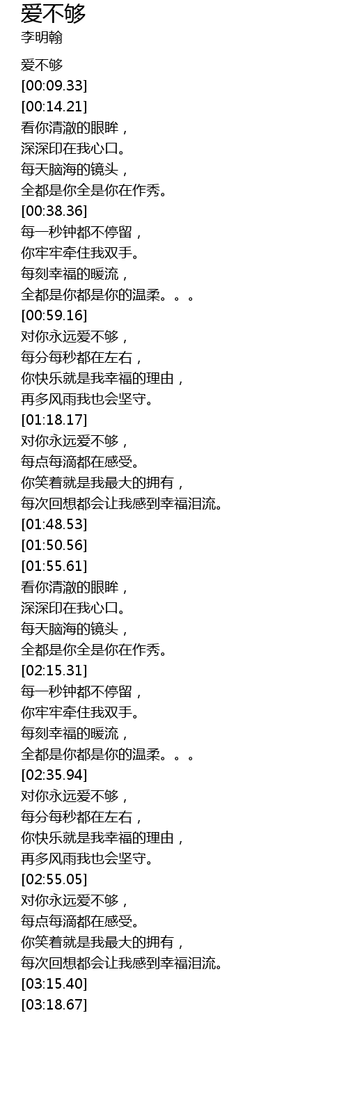 | [01:18.69] | duì nǐ yǒng yuǎn ài bù gòu, |