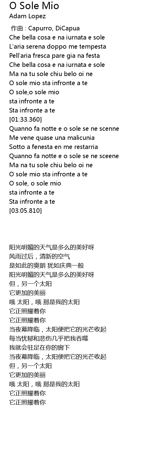 | [00:00.00] | 作曲 : Capurro, DiCapua |