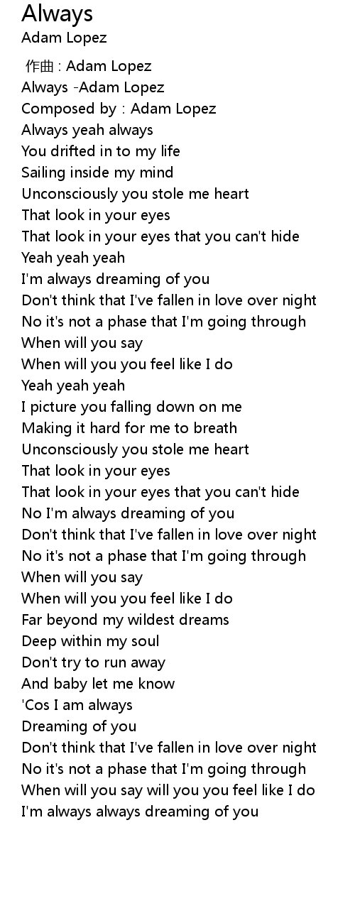 | [00:00.523] | Always -Adam Lopez |