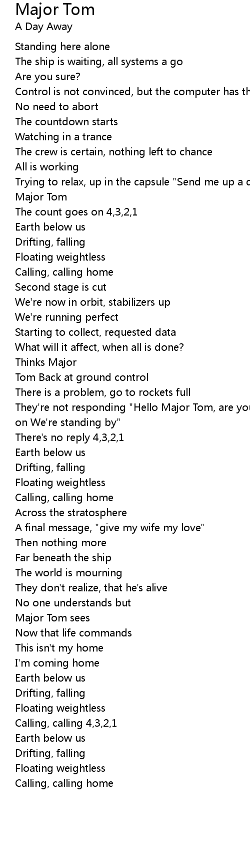 They're not responding "Hello Major Tom, are you receiving? Turn the thrusters on We're standing by" |