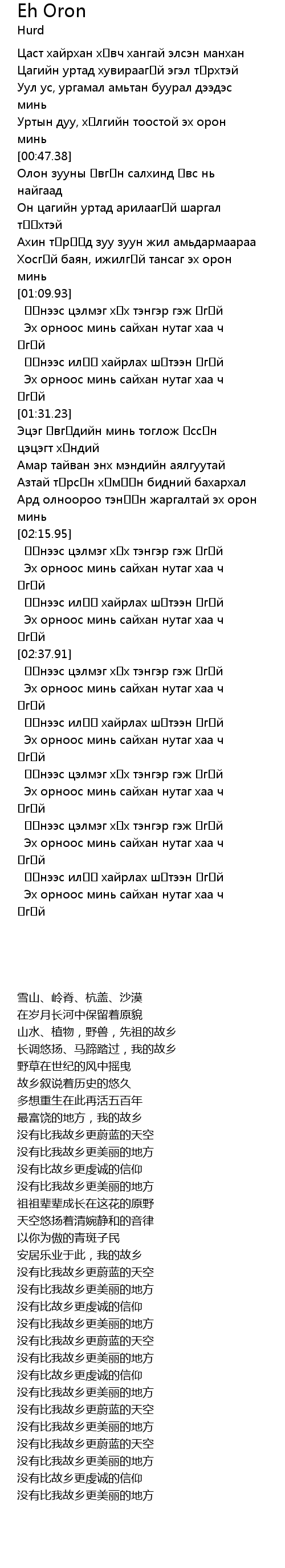 Хосгүй баян, ижилгүй тансаг эх орон минь |