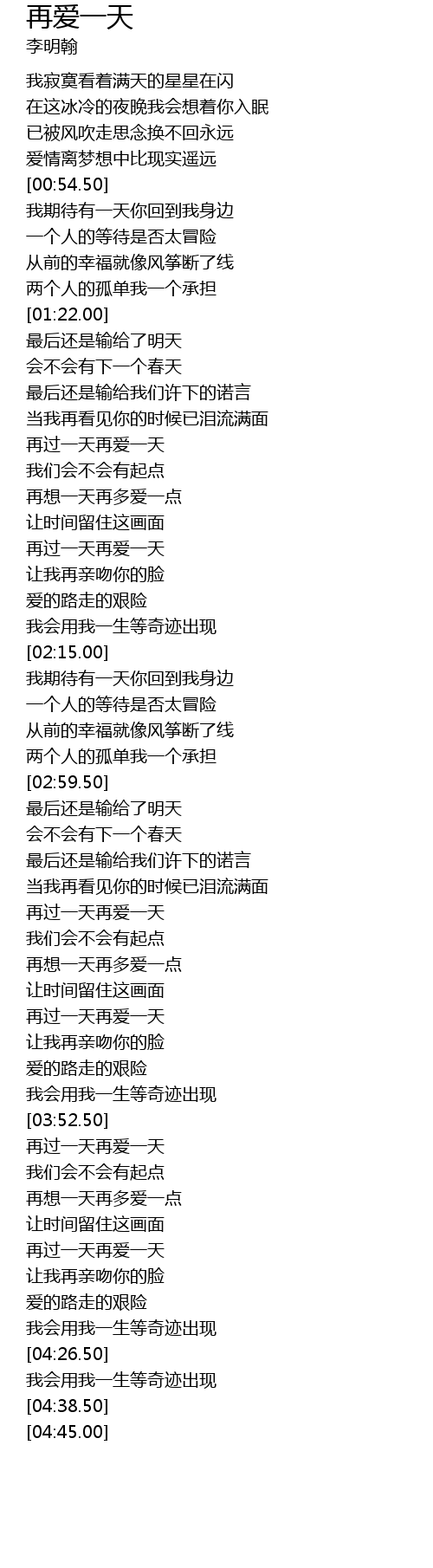 | [01:43.50] | zài guò yì tiān zài ài yì tiān |