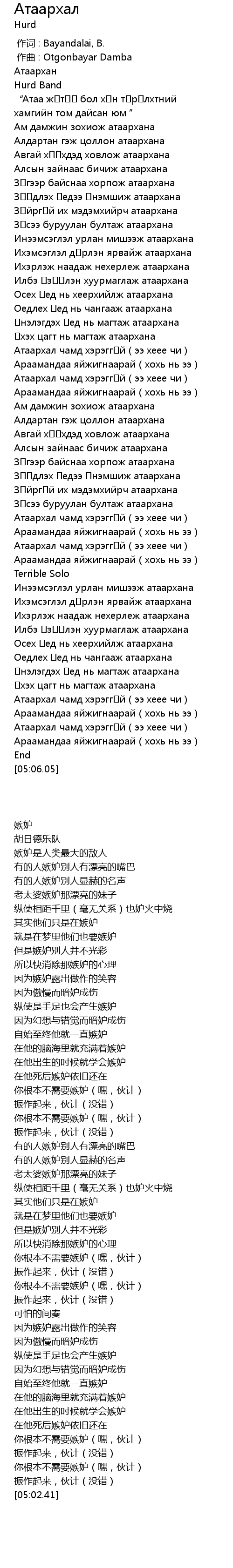 作词 : Bayandalai, B. |