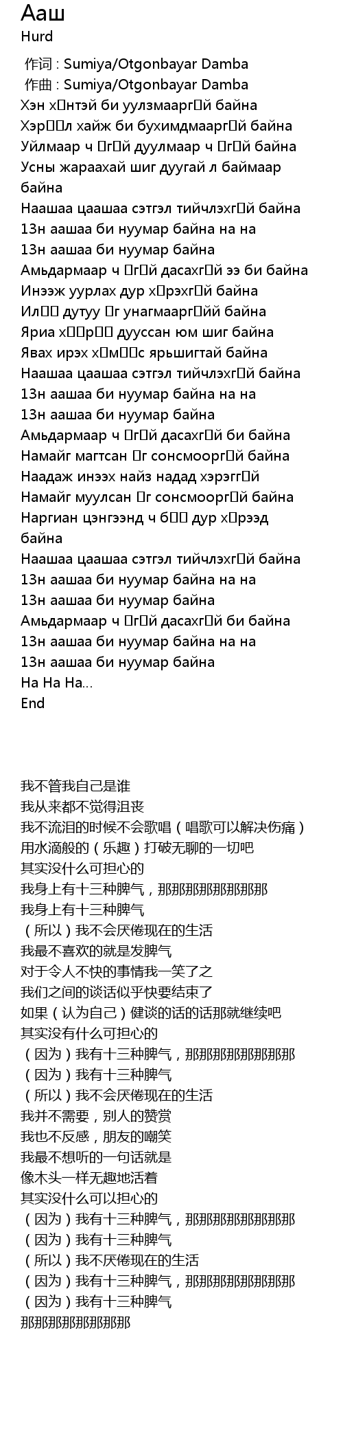 13н аашаа би нуумар байна на на |