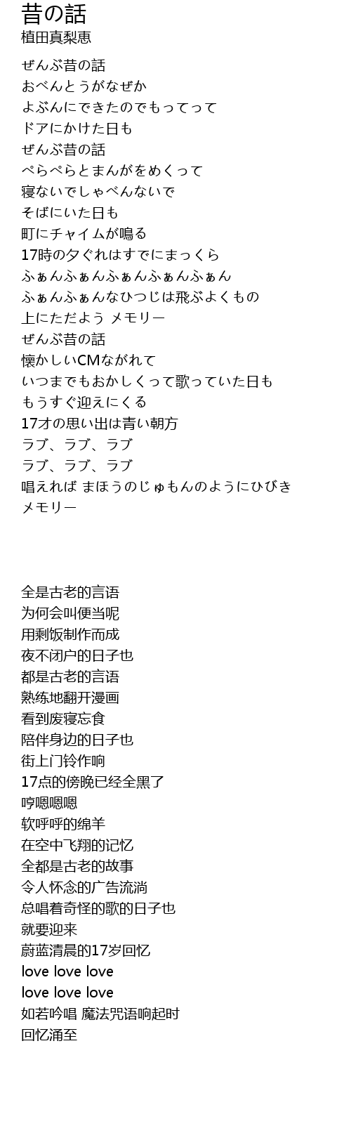 | [00:41.54] | ぜんぶ昔の話 |