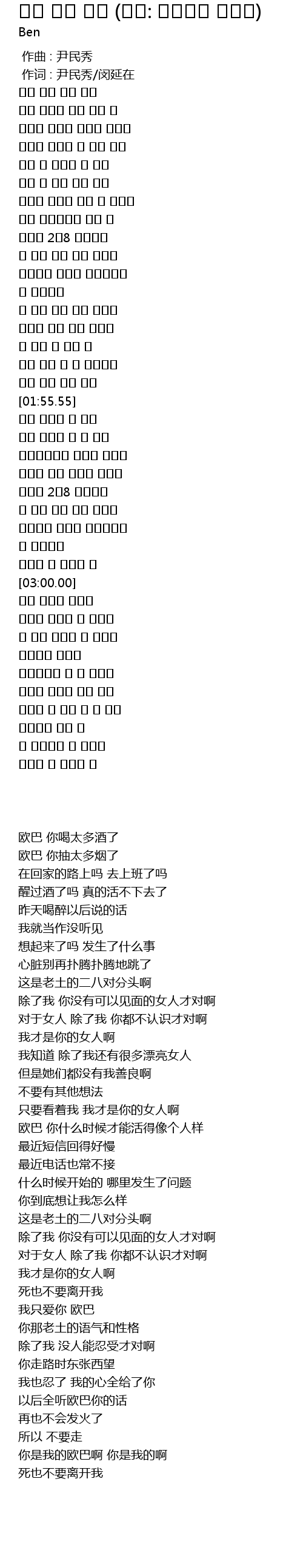 | [00:01.00] | 作词 : 尹民秀/闵延在 |