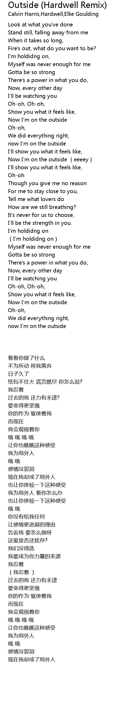 | [01:54.030] | Now I' m on the outside eeeey |