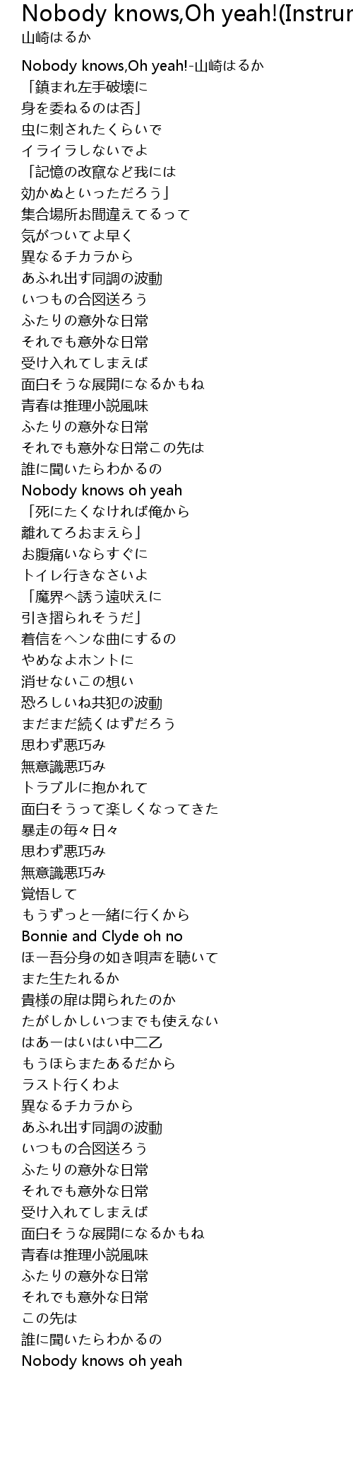 | [00:00.531] | Nobody knows,Oh yeah!-山崎はるか |