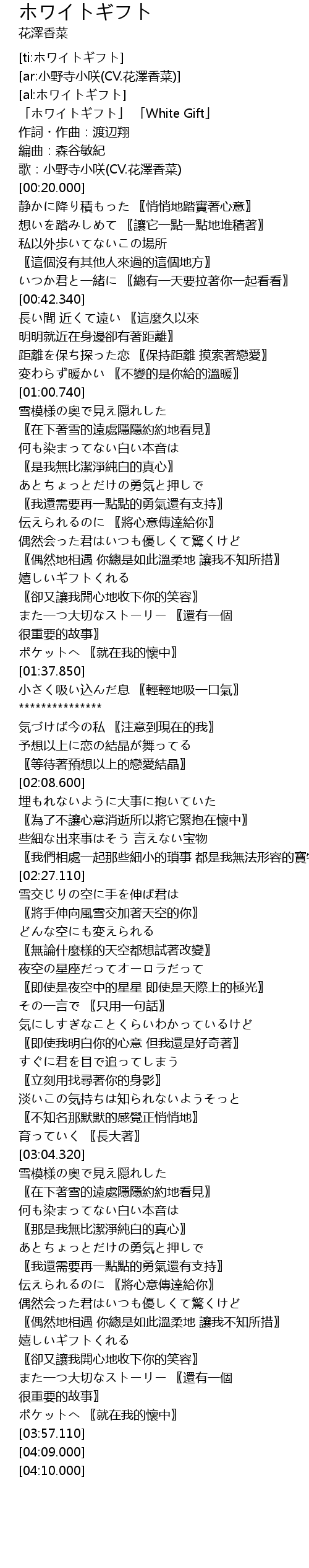 | [00:00.000] | 「ホワイトギフト」 「White Gift」 |
