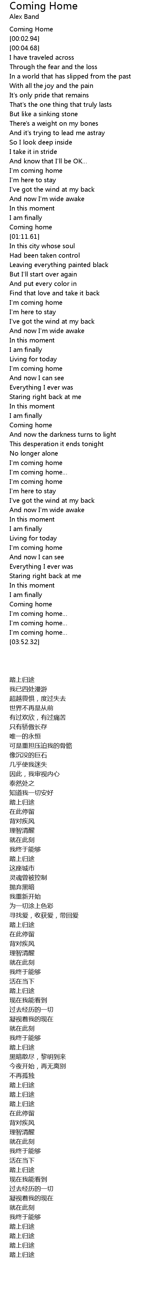 | [00:52.25] | I'm coming home |