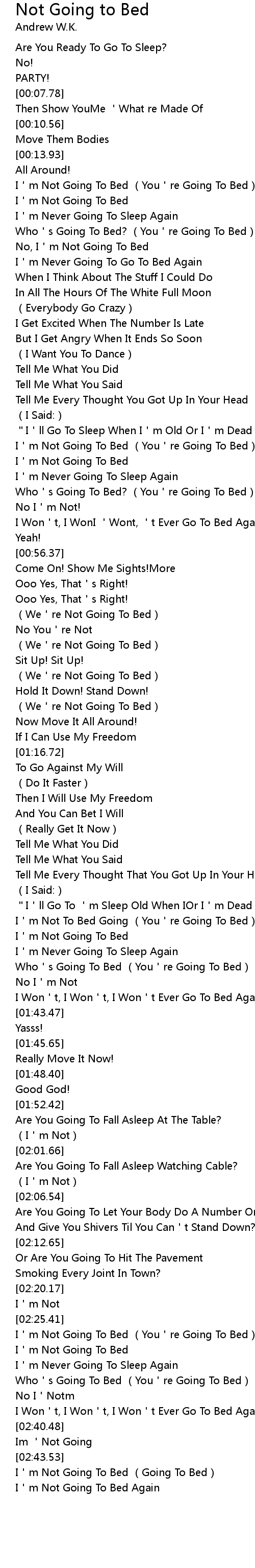 | [00:43.65] | I m Not Going To Bed You re Going To Bed |