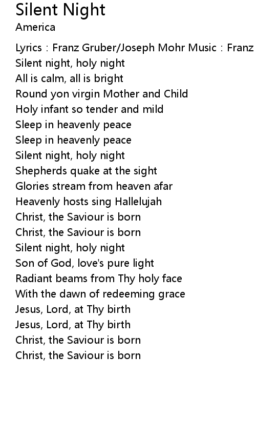 | Lyrics: Franz Gruber Joseph Mohr Music: Franz Gruber Joseph Mohr | |