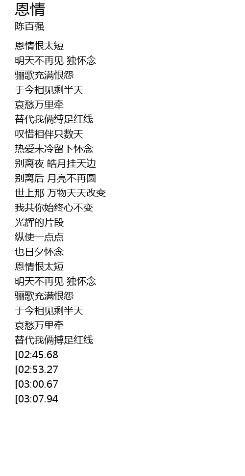 | [02:00.58] | 恩情恨太短 |