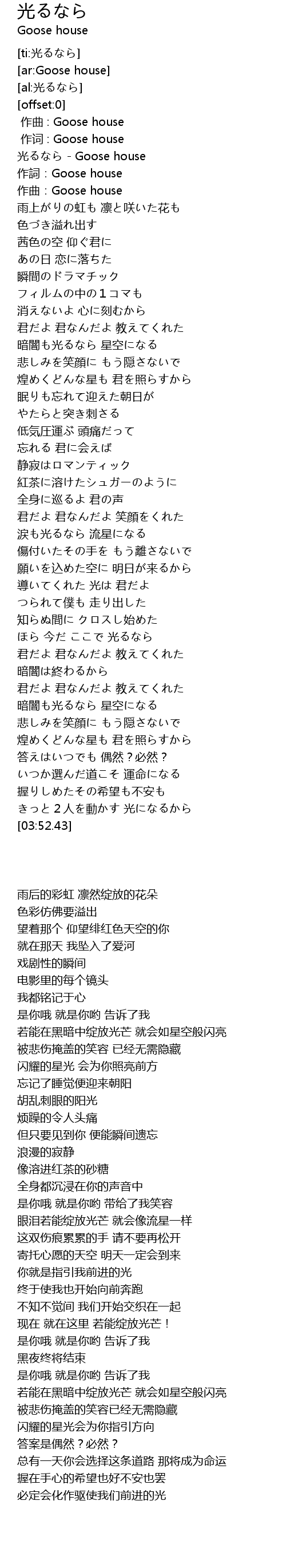 | [00:00.61] | 光るなら - Goose house |