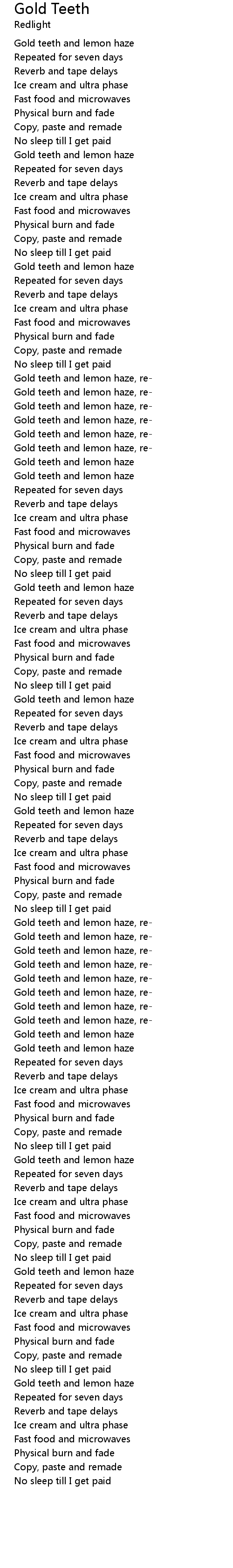 Gold teeth and lemon haze, re- |