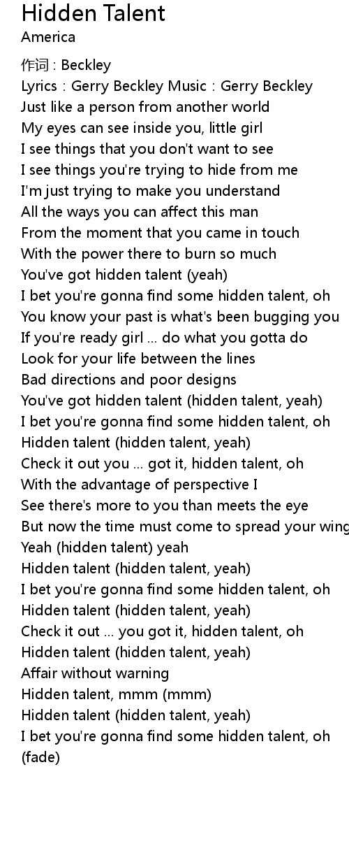 | Hidden talent hidden talent, yeah | |