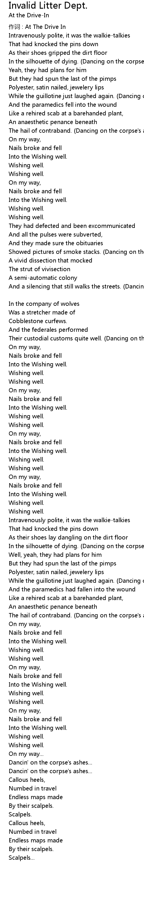 | And a silencing that still walks the streets. Dancing on the corpse' s ashes... | |