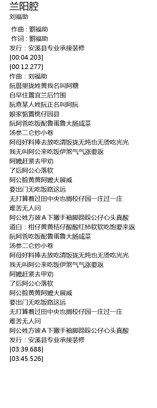| [03:37.146] | 发行:安溪县专业承接装修 |