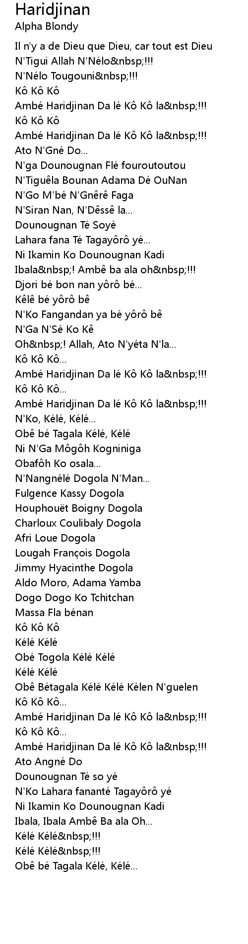 | Oh nbsp! Allah, Ato N' yé ta N' la... | |