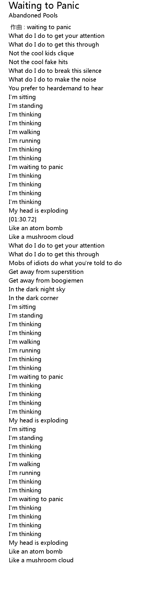 | [01:21.91] | I'm waiting to panic |