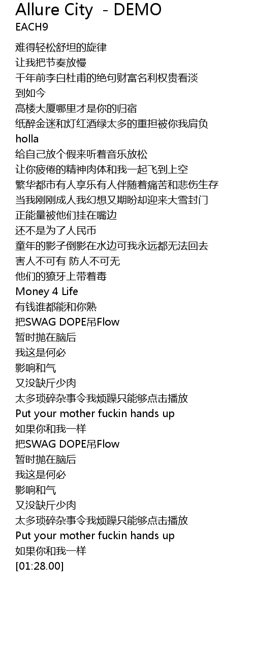| [01:13.48] | ba SWAG DOPE diao Flow |