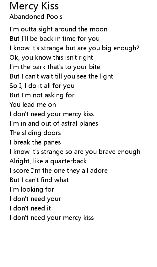 I don't need your mercy kiss |