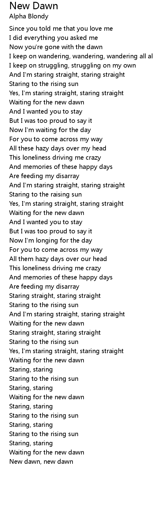 New dawn, new dawn |