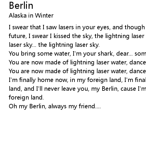 I'm finally home now, in my foreign land, I'm finally home now, in my foreign land, and I'll never leave you, my Berlin, cause I'm finally home now, in my foreign land. |