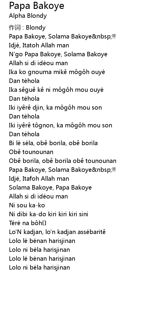 | Song | Papa Bakoye |