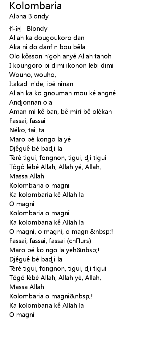 | Olo k sson n' goh anyé Allah tanoh | |