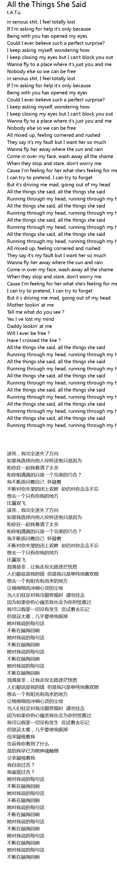 | [02:34.75] | All the things she said, all the things she said |