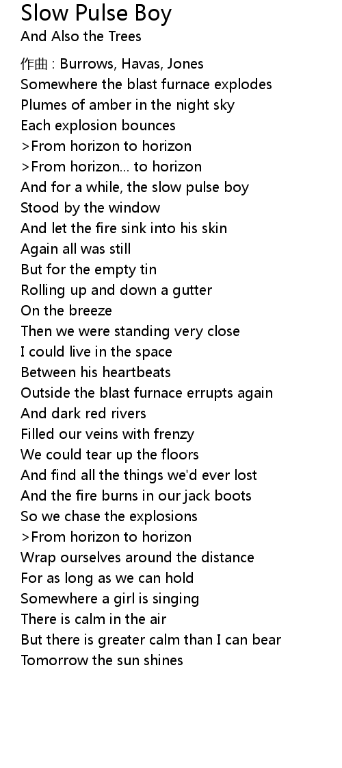 | And for a while, the slow pulse boy | |