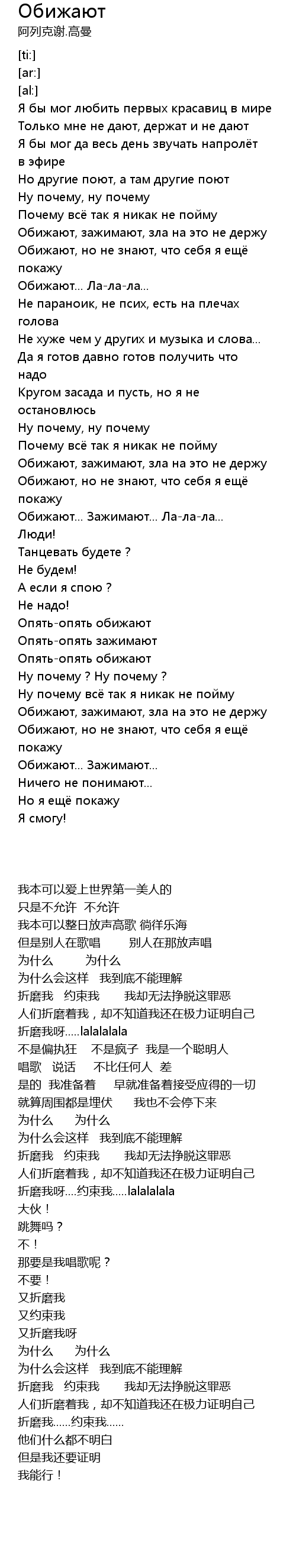 Обижают... Зажимают... Ла-ла-ла... |