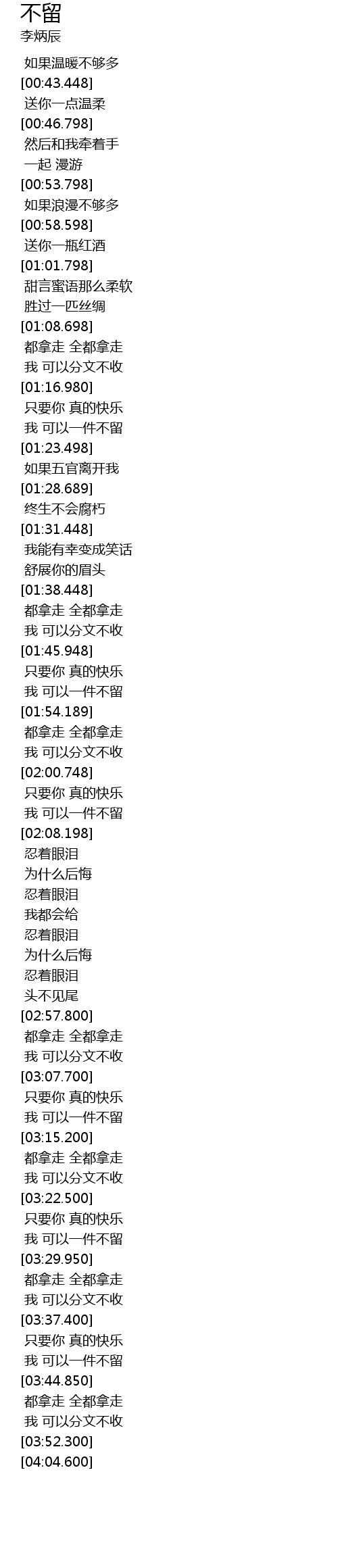 | [03:42.450] | 我 可以一件不留 |