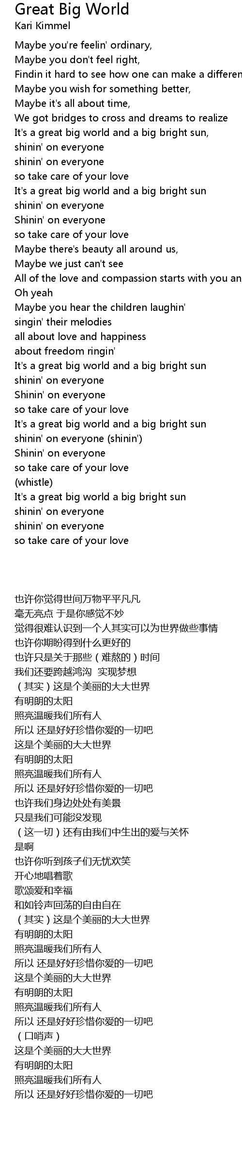 It's a great big world a big bright sun |