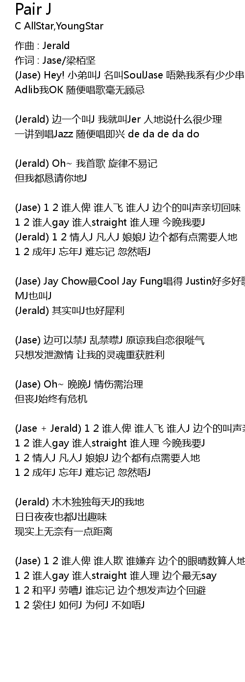 | (Jase + Jerald) 1 2 谁人俾 谁人飞 谁人J 边个的叫声亲切回味 | |