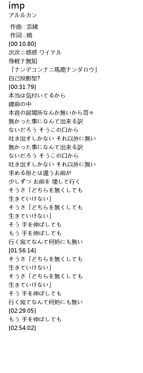 | [02:04.51] | 生きていけない」 |