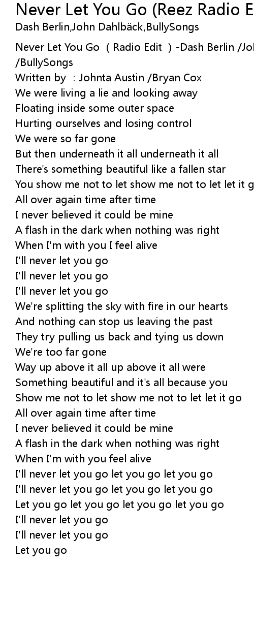 | [00:00.00] | Never Let You Go (Radio Edit )-Dash Berlin /John Dahlbäck /BullySongs |