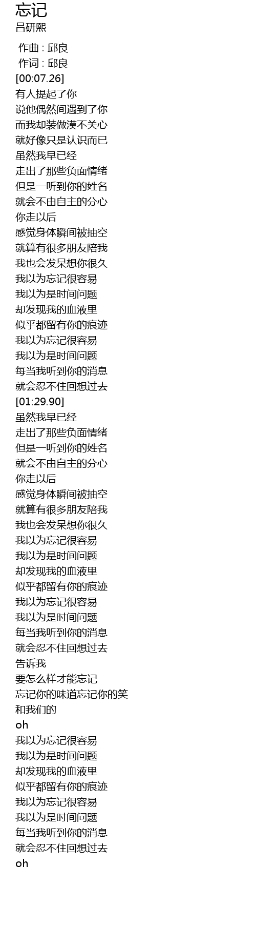 | [00:59.70] | 我以为忘记很容易 |