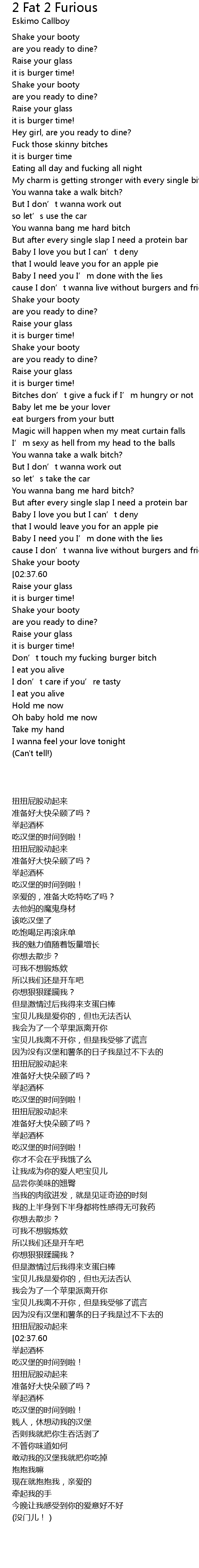 | [02:55.54] | Don' t touch my fucking burger bitch |
