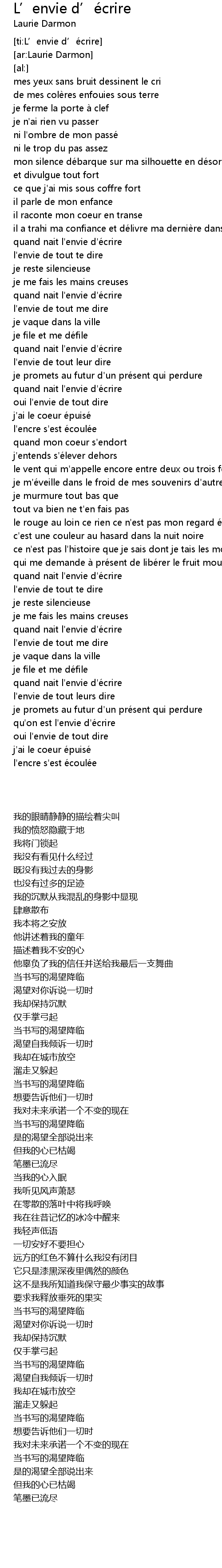 | [02:26.53] | qu' on est l' envie d'é crire |