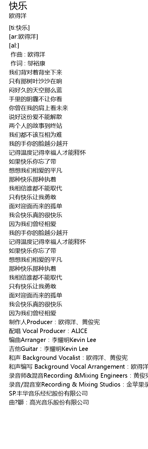 | [02:43.68] | wo hui kuai le zhen de hen kuai le |