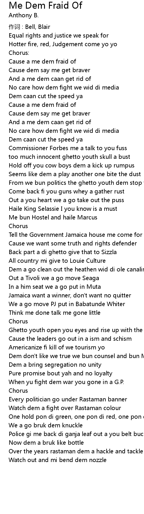 | Dem don' t like we true we bun counsel and bun M. P. | |
